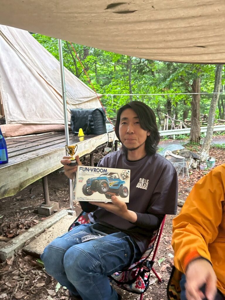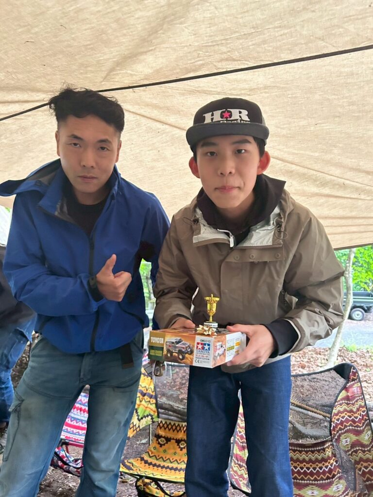 圧倒的な速さで腰の砕けたおじさんたちを華麗に蹴散らし、見事ラリーレイド開幕戦の優勝カップをもぎ取ったのはラジ少年でした。タイムは驚愕の1分台。「走行後は何度も足がつった、ピクピクしている、明日は歩けるのだろうか。。」とのこと。